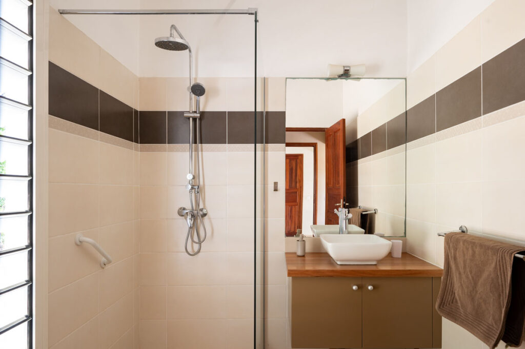 – Quatre chambres climatisées avec salles de bain et w.c privatifs dont une chambre répondant aux normes d’accès handicapés